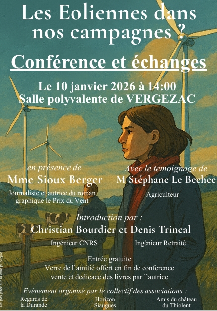 Horizon Siaugues s’associe avec les Associations Regards de La Durande et les Amis du Thiolent pour vous convier à une conférence-débat publique, exceptionnelle :